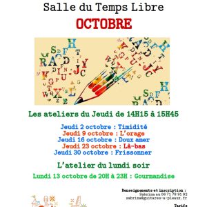 Lire la suiteAteliers d’écriture d’octobre Vous aimez les mots…