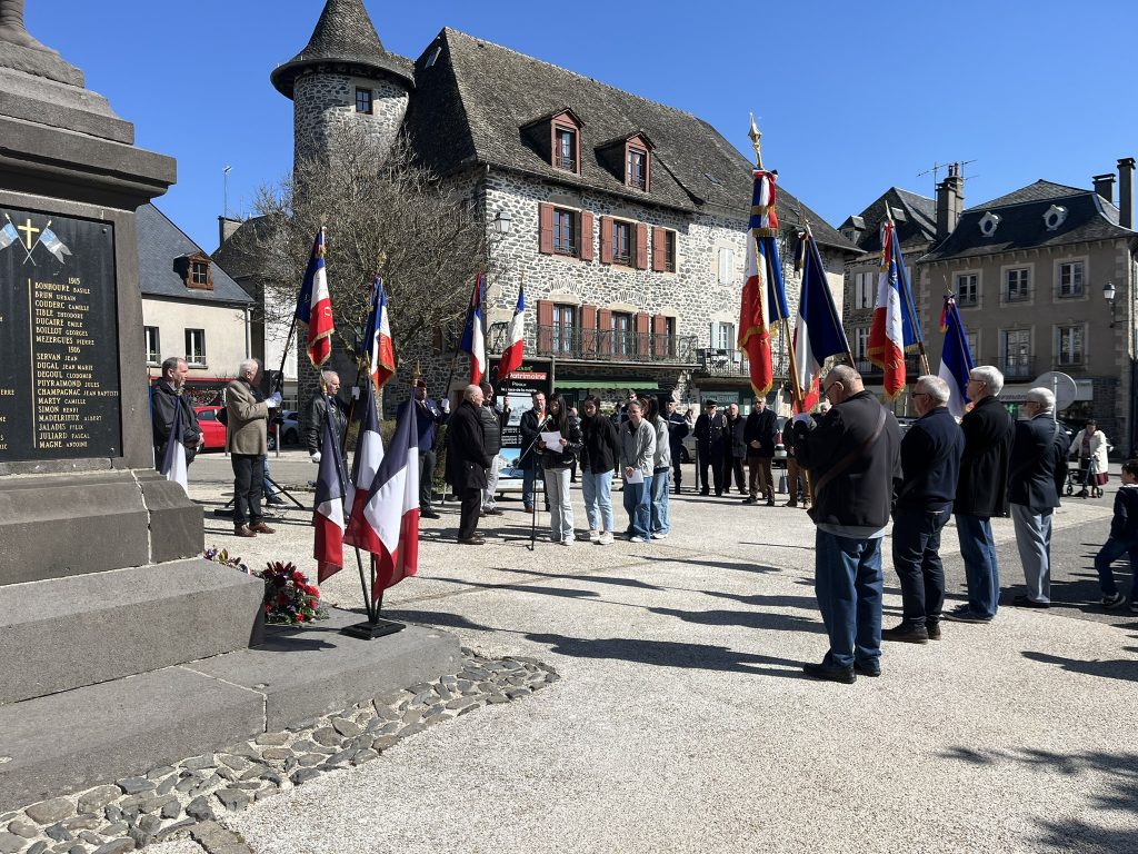 La matinée a débuté par une messe célébrée à Pleaux en hommage aux camarades disparus. Elle s’est poursuivie par la cérémonie officielle devant le Monument aux Morts, marquée par le dépôt de gerbes, l’appel des noms et un temps de recueillement. Des élèves de l’école Saint-Joseph, de l’école publique ainsi que du collège ont pris part à la cérémonie en procédant à la lecture de textes, contribuant avec sérieux et dignité à ce moment de mémoire. La commémoration s’est conclue par un vin d’honneur offert par la Municipalité, avant le repas fraternel organisé à la Maison du Temps Libre.