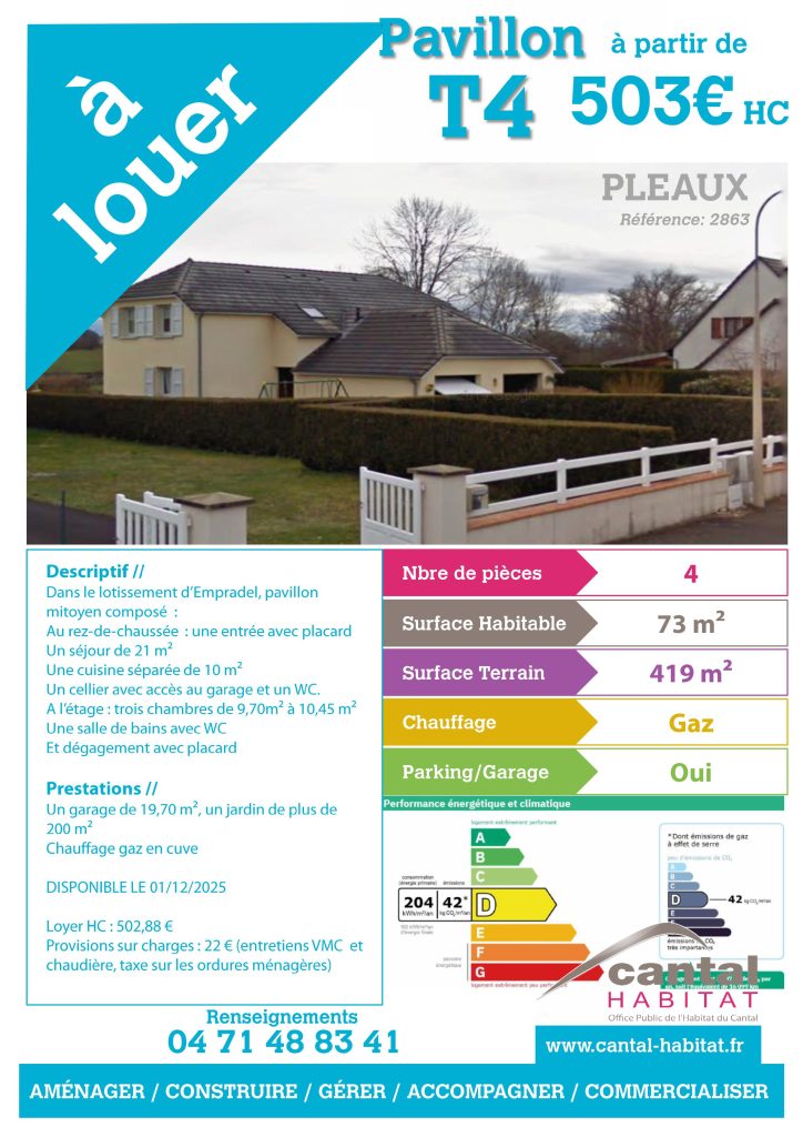Contact : Cantal Habitat : 04 71 48 20 16