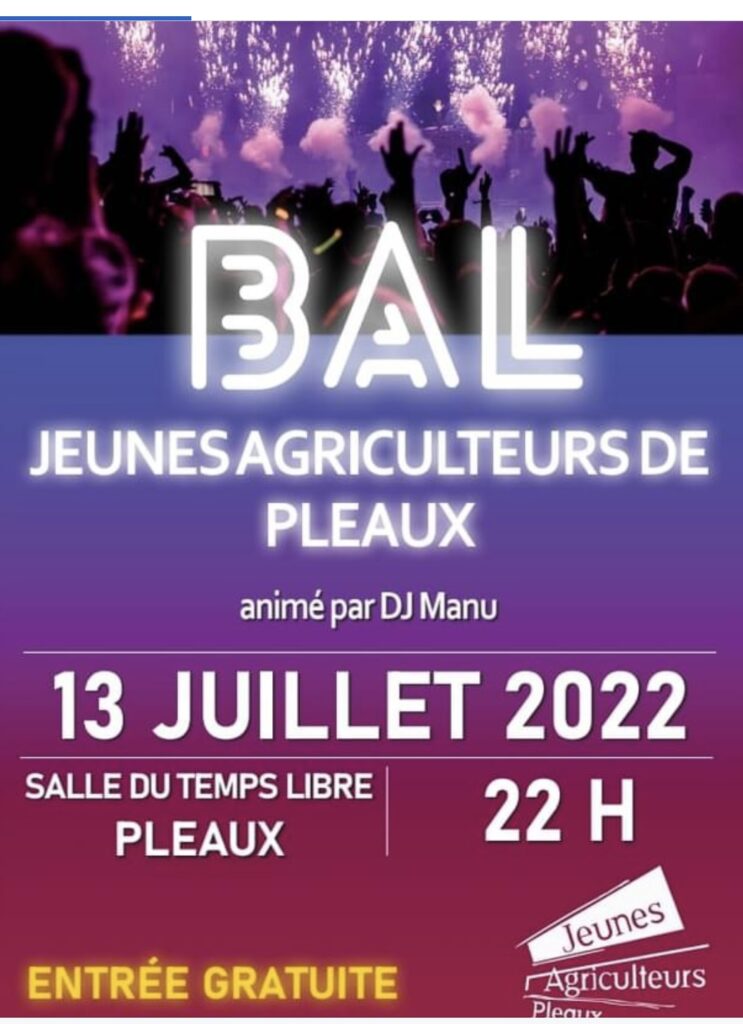 Organisé par les Jeunes Agriculteurs du Canton de Pleaux – à 22h à la Maison du Temps Libre – Entrée Gratuite – Animé par DJ Manu
