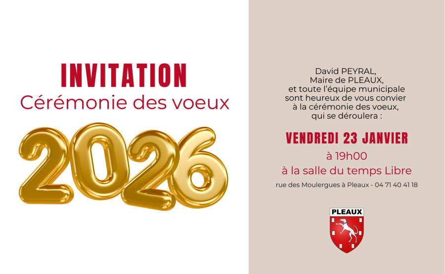 David Peyral, maire de Pleaux, et le conseil municipal ont le plaisir de convier l’ensemble des habitants à la cérémonie des vœux ✨
