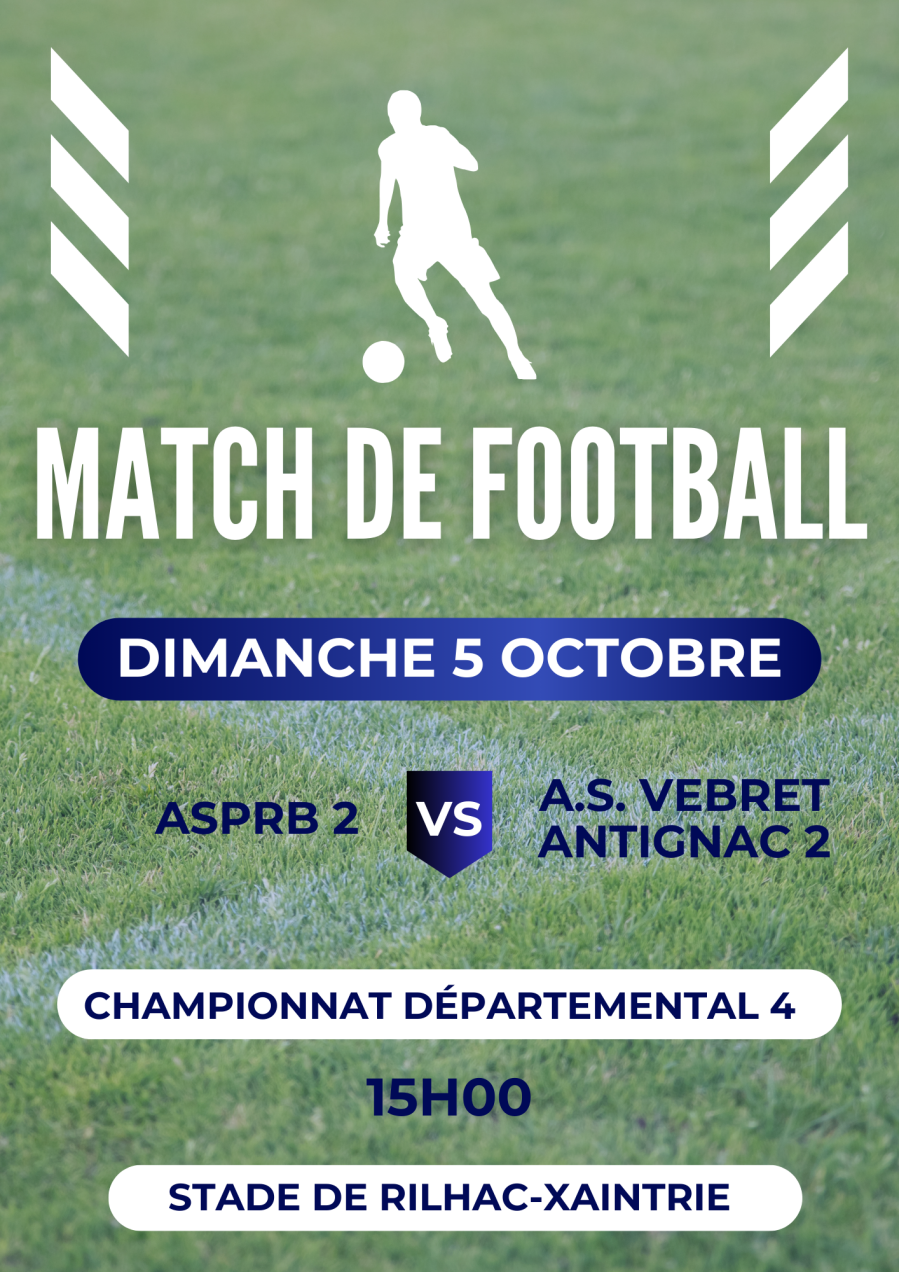 📌à 15h00, l’ASPRB 2 jouera contre l’A.S. VEBRET ANTIGNAC 2