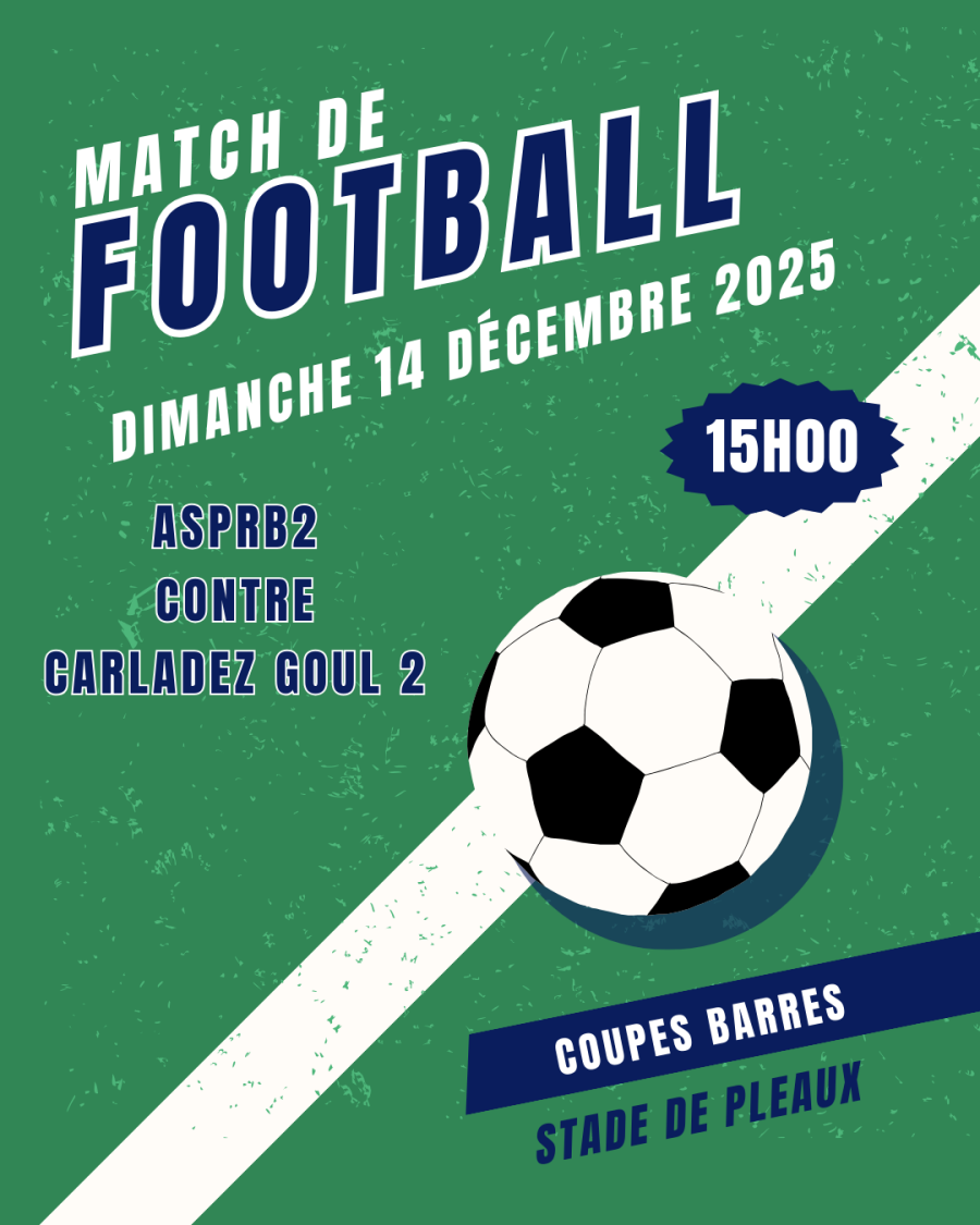 – Dimanche 14 décembre au stade de Pleaux à 15h, ASPRB2 reçoit CARLADEZ GOUL 2