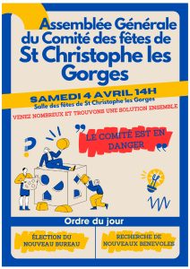 📢 Le Comité des fêtes de St Christophe les Gorges est en danger.