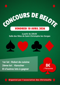 L’association des Christoufis organise un concours de belote le vendredi 10 avril 2026.