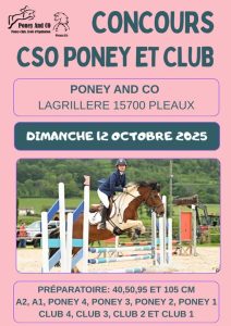 Concours de saut d’obstacles Poney et Club au poney club Poney and Co sis Lagrillère de Tourniac le dimanche 12 octobre 2025.