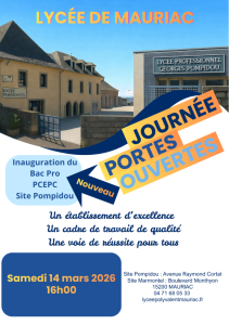 Le Lycée de Mauriac vous invite à sa journée Portes Ouvertes le samedi 14 mars 2026.