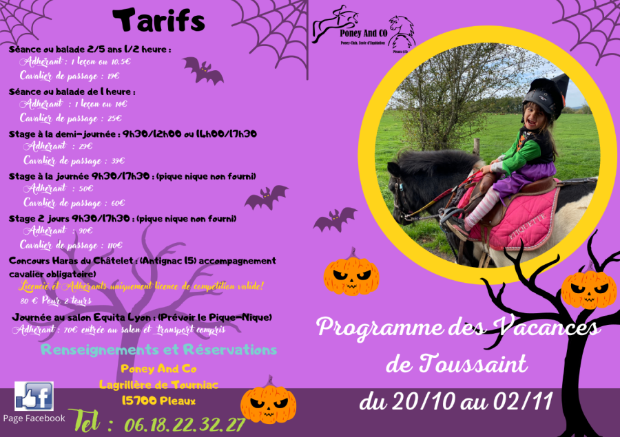 Découvrez tout le programme proposé par le poney club Poney and Co pour les vacances de la Toussaint.