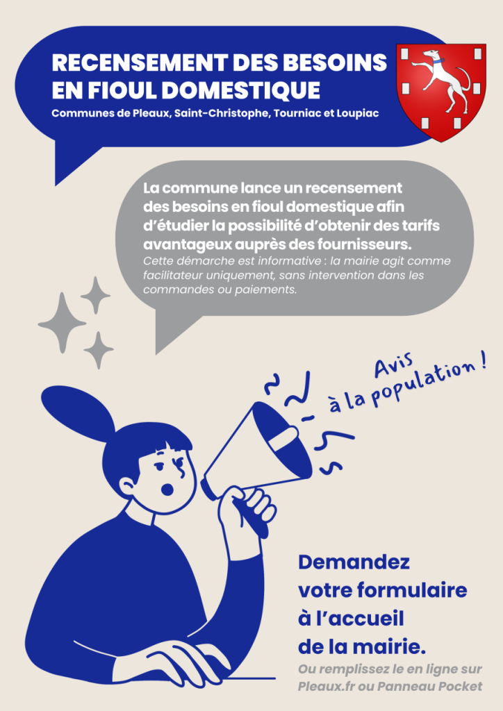 Habitants de Pleaux, Saint-Christophe, Tourniac et Loupiac : faites connaître vos besoins en fioul !