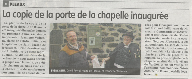 Accueil / Tous les articles / medias / Inauguration de la copie de la porte de la chapelle de Rosson