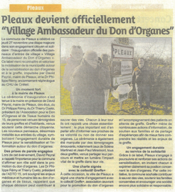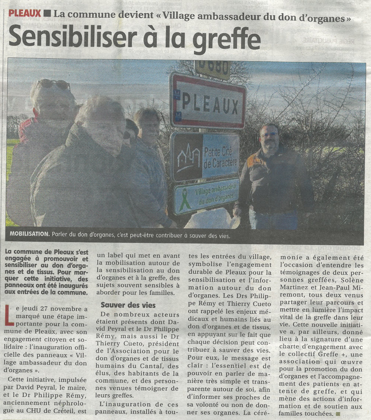 Accueil / Tous les articles / medias / Pleaux devient « Village Ambassadeur du Don d’Organes »