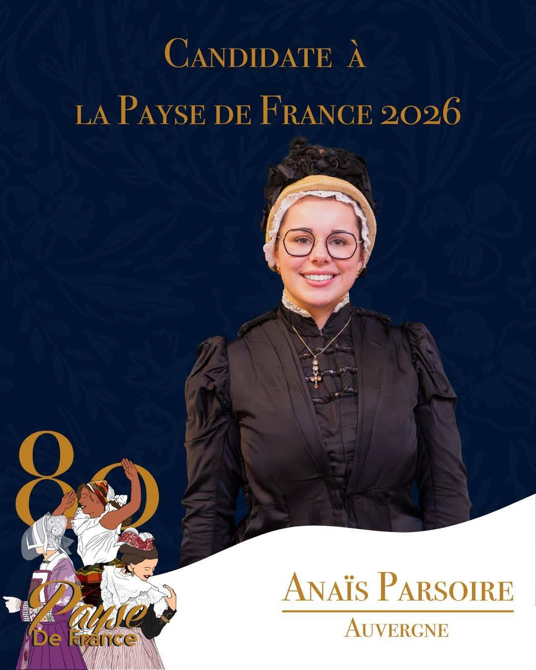 Anaïs PARSOIRE , fille de David PARSOIRE (Président de l’USLC) et Marie Pierre PARSOIRE (Conseillère municipal) va représenter l’Auvergne au concours national de la Payse de France à Paris (à Massy, plus précisément) le 7 février.